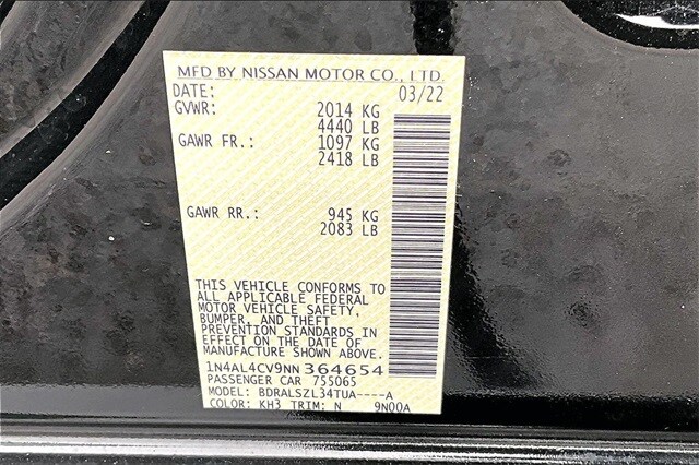 Super Black Clearcoat 2022 Nissan Altima 2.0 SR FWD CVT with Xtronic 2.0L I4 PDI Turbocharged DOHC 16V LEV3-ULEV70 236hp CVT with Xtronic.