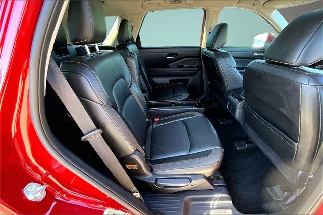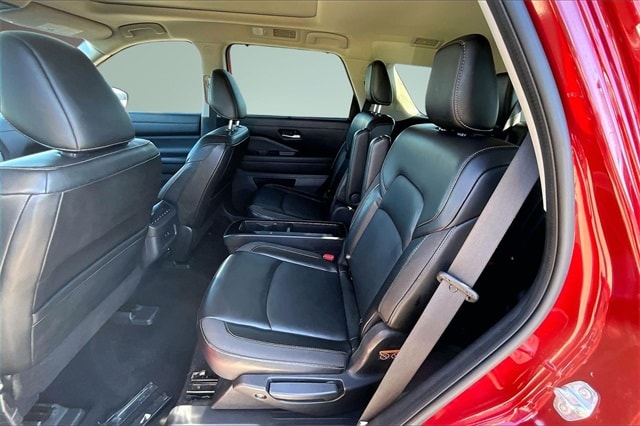 SL Premium Package (20" Alloy Wheels, 2nd-Row Captain Chairs, 2nd-Row Removable Center Console, Bose Premium Audio System, Heated Rear Seats, Panoramic Moonroof, Tow Hitch Receiver & Harness, and Wireless Charging Pad), 4WD, 18" Machined Alloy Wheels, 3rd row seats: bench, 4-Wheel Disc Brakes, 6 Speakers, ABS brakes, Air Conditioning, Alloy wheels, AM/FM radio: SiriusXM, Auto High-beam Headlights, Auto-dimming Rear-View mirror, Automatic temperature control, Axle Ratio: TBD, Black Splash Guards (Set of 4), Brake assist, Bumpers: body-color, Captain's Chairs Carpeted Floor Mats (Set of 4), Cross Bars, Delay-off headlights, Driver door bin, Driver vanity mirror, Dual front impact airbags, Dual front side impact airbags, Electronic Stability Control, Emergency communication system: NissanConnect Services, Exterior Parking Camera Rear, Four wheel independent suspension, Front anti-roll bar, Front Bucket Seats, Front Center Armrest, Front dual zone A/C, Front fog lights, Front reading lights, Fully automatic headlights, Garage door transmitter: HomeLink, Heated door mirrors, Heated Front Bucket Seats, Heated front seats, Heated steering wheel, Illuminated entry, Knee airbag, Leather Seating Surfaces, Leather steering wheel, Low tire pressure warning, Navigation system: NissanConnect Navigation, NissanConnect w/Navigation & Services, Occupant sensing airbag, Outside temperature display, Overhead airbag, Overhead console, Panic alarm, Passenger door bin, Passenger vanity mirror, Power door mirrors, Power driver seat, Power Liftgate, Power passenger seat, Power steering, Power windows, Radio data system, Radio: AM/FM Audio System, Rear air conditioning, Rear anti-roll bar, Rear reading lights, Rear seat center armrest, Rear side impact airbag, Rear window defroster, Rear window wiper, Reclining 3rd row seat, Remote keyless entry, Security system, Speed control, Speed-sensing steering, Split folding rear seat, Spoiler, Steering wheel mounted audio controls, Tachometer, Telescoping steering wheel, Tilt steering wheel, Traction control, Trip computer, Turn signal indicator mirrors, and Variably intermittent wipers. 21/27 City/Highway MPG