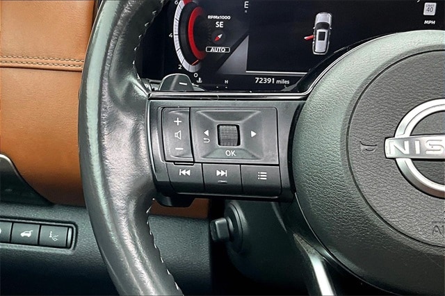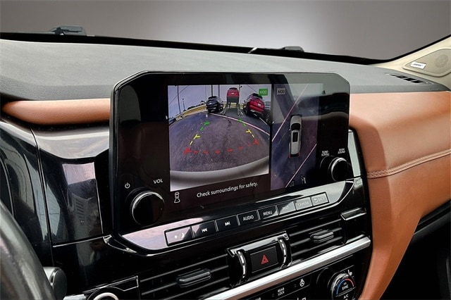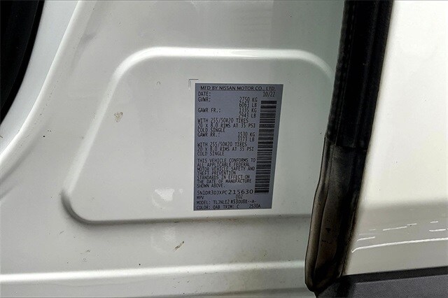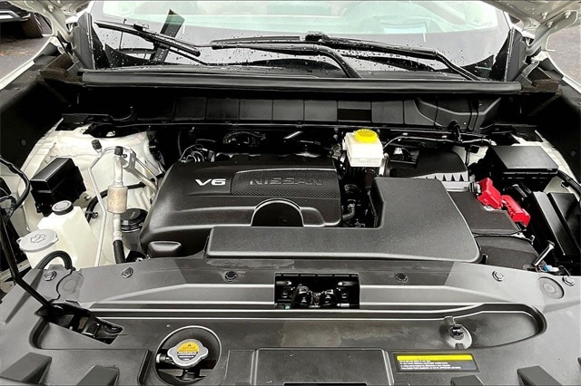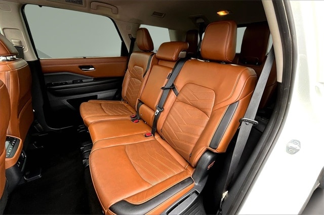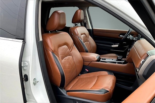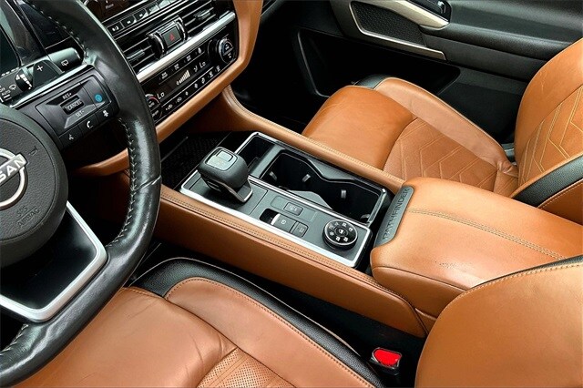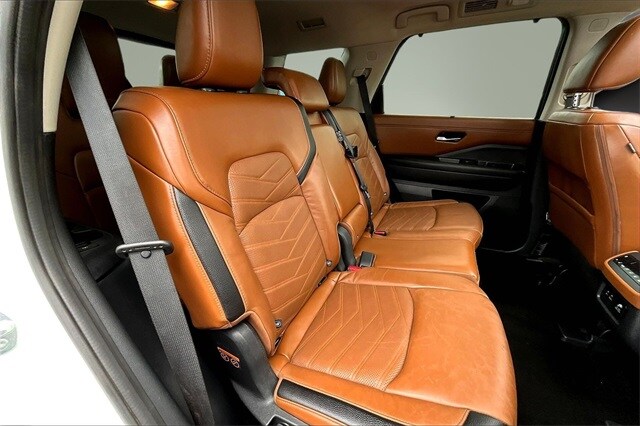 Cargo Package (Cargo Area Protector, Cargo Net, and First Aid Kit), 4WD, 13 Speakers, 3rd row seats: bench, 4-Wheel Disc Brakes, ABS brakes, Air Conditioning, Alloy wheels, AM/FM radio: SiriusXM, Auto High-beam Headlights, Auto tilt-away steering wheel, Auto-dimming Rear-View mirror, Automatic temperature control, Axle Ratio: 4.334, Bench Seat Carpeted Floor Mats (Set of 4), Black Splash Guards (Set of 4), Bodyside moldings, Bose Premium Audio System, Brake assist, Bumpers: body-color, Delay-off headlights, Driver door bin, Driver vanity mirror, Dual front impact airbags, Dual front side impact airbags, Electronic Stability Control, Emergency communication system: NissanConnect Services, Exterior Parking Camera Rear, Four wheel independent suspension, Front anti-roll bar, Front Bucket Seats, Front Center Armrest, Front dual zone A/C, Front reading lights, Fully automatic headlights, Garage door transmitter: HomeLink, Heads-Up Display, Heated & Cooled Front Bucket Seats, Heated door mirrors, Heated front seats, Heated rear seats, Heated steering wheel, Illuminated entry, Knee airbag, Leather steering wheel, LED Fog Lamps, Low tire pressure warning, Memory seat, Navigation system: NissanConnect Navigation, NissanConnect w/Navigation & Services, Occupant sensing airbag, Outside temperature display, Overhead airbag, Overhead console, Panic alarm, Passenger door bin, Passenger vanity mirror, Power door mirrors, Power driver seat, Power Liftgate, Power moonroof, Power passenger seat, Power steering, Power windows, Radio data system, Radio: AM/FM Audio System, Rain sensing wipers, Rear air conditioning, Rear anti-roll bar, Rear reading lights, Rear seat center armrest, Rear side impact airbag, Rear window defroster, Rear window wiper, Reclining 3rd row seat, Remote keyless entry, Security system, Semi-Aniline Leather Seating Surfaces, Speed control, Speed-sensing steering, Speed-Sensitive Wipers, Split folding rear seat, Spoiler, Steering wheel memory, Steering wheel mounted audio controls, Tachometer, Telescoping steering wheel, Tilt steering wheel, Traction control, Trip computer, Turn signal indicator mirrors, Variably intermittent wipers, Ventilated front seats, and Wheels: 20" Machined Alloy w/Dark Met Gray Finish.