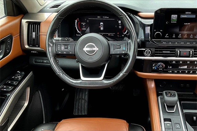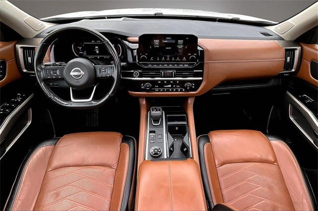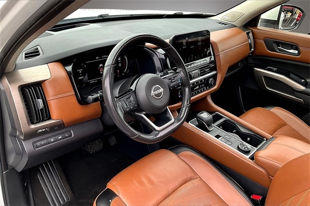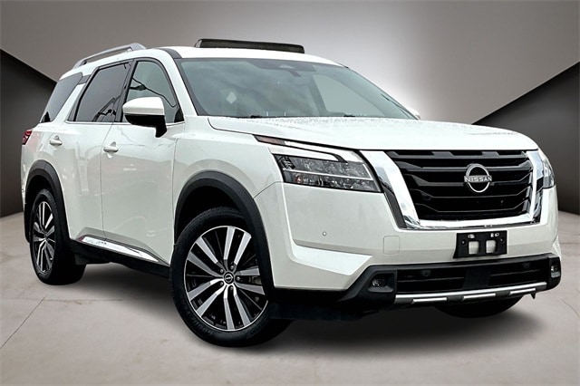 Pearl White Tricoat 2023 Nissan Pathfinder Platinum 4WD 9-Speed Automatic V6 4WD.