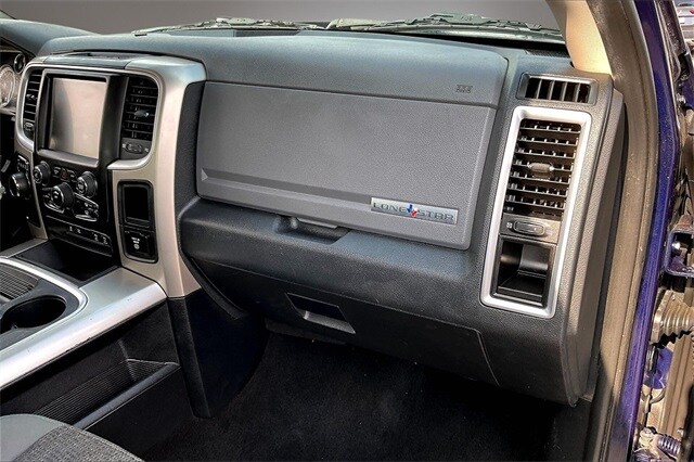 Lone Star Regional Package, Quick Order Package 26R Lone Star (Regional) (115V Auxiliary Power Outlet, 40/20/40 Split Bench Seat, 6 Month Trial (Reg. Required), 6 Month Trial (Registration Required), 8.4" Touchscreen Display, Auto-Dimming Exterior Mirrors, Bright/Bright Billets Grille, Charge Only Remote USB Port, Class IV Receiver Hitch, Dual Rear Exhaust w/Bright Tips, Electroluminescent Instrument Cluster, Exterior Mirrors Courtesy Lamps, Exterior Mirrors w/Supplemental Signals, Fog Lamps, Folding Flat Load Floor Storage, For Details Visit DriveUconnect.com, Front Armrest w/3 Cupholders, Front Center Seat Cushion Storage, Glove Box Lamp, GPS Antenna Input, Integrated Voice Command w/Bluetooth, Leather Wrapped Steering Wheel, LED Bed Lighting, Lone Star Badge, Media Hub (SD, USB, AUX), Nav-Capable! See Dealer for Details, Overhead Console w/Garage Door Opener, ParkSense Front/Rear Park Assist System, ParkView Rear Back-Up Camera, Power 10-Way Driver Seat, Power Folding Mirrors, Power Heated Fold-Away Mirrors, Power Lumbar Adjust, Premium Cloth 40/20/40 Bench Seat, Radio: Uconnect 8.4, Rear 60/40 Split Folding Seat, Rear Dome w/On/Off Switch Lamp, Rear-View Auto-Dimming Mirror w/Microphone, Remote SD Card Slot, Remote Start System, Security Alarm, SIRIUSXM Satellite Radio, Steering Wheel Mounted Audio Controls, Storage Tray, Sun Visors w/Illuminated Vanity Mirrors, Uconnect Access, Underhood Lamp, Universal Garage Door Opener, and Wheels: 20" x 8" Aluminum Chrome Clad), 17" x 7" Aluminum Wheels, 3.21 Rear Axle Ratio, 4-Wheel Disc Brakes, 6 Speakers, ABS brakes, Active Grille Shutters, Air Conditioning, Alloy wheels, AM/FM radio, Anti-Spin Differential Rear Axle, Black Exterior Mirrors, Black Rotary Shifter, Brake assist, Bumpers: chrome, Center Hub, Cloth 40/20/40 Bench Seat, Compass, Delay-off headlights, Driver door bin, Dual front impact airbags, Dual front side impact airbags, Electronic Shift, Electronic Stability Control, Exterior Mirrors w/Heating Element, Front anti-roll bar, Front Center Armrest w/Storage, Front reading lights, Front wheel independent suspension, Fully automatic headlights, Heated door mirrors, Illuminated entry, Low tire pressure warning, Occupant sensing airbag, Outside temperature display, Overhead airbag, Overhead console, Panic alarm, Passenger door bin, Passenger vanity mirror, Power door mirrors, Power steering, Power windows, Radio data system, Radio: Uconnect 5.0, Rear anti-roll bar, Rear seat center armrest, Rear step bumper, Remote keyless entry, Speed control, Tachometer, Tilt steering wheel, Tip Start, Traction control, Trip computer, Variably intermittent wipers, and VoltmeteR. Odometer is 71322 miles below market average!