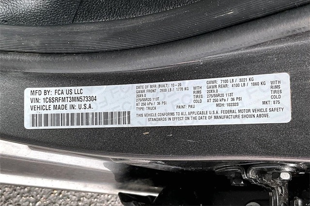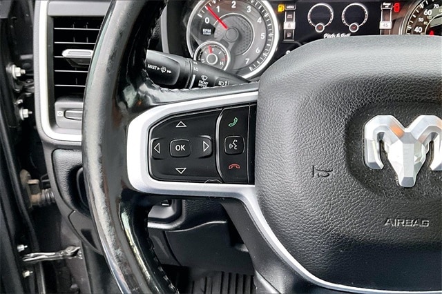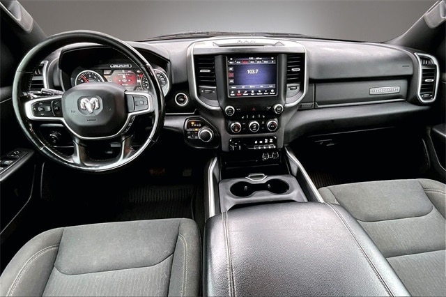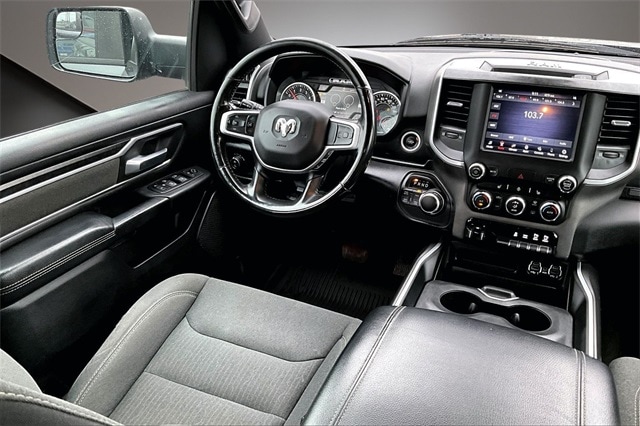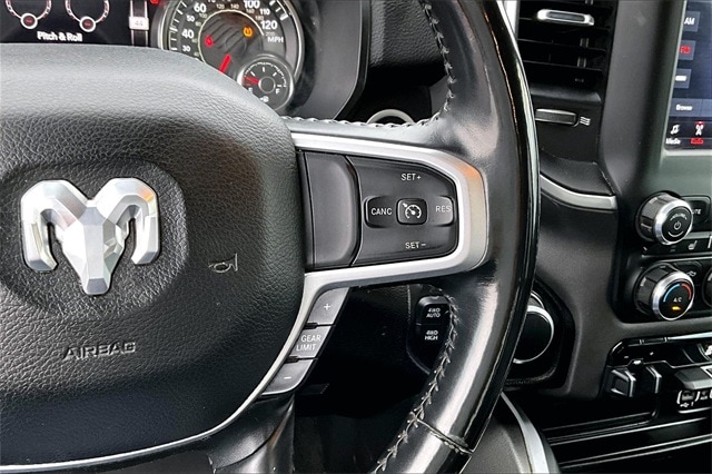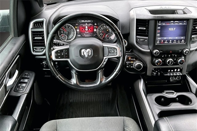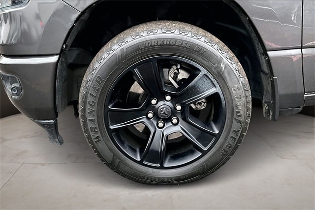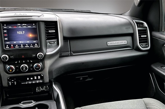Big Horn Level 2 Equipment Group (115V Auxiliary Power Outlet, 400W Inverter, and ParkSense Front/Rear Park Assist w/Stop), Night Edition (3 Rear Seat Head Restraints, 4 Way Front Headrests, Anti-Spin Differential Rear Axle, Deluxe Cloth Bucket Seats, Front Seat Back Map Pockets, Rear 60/40 Folding Seat, and Wheels: 20" x 9.0" Premium Paint/Polished), Quick Order Package 25Z Big Horn, 33 Gallon Fuel Tank, 4-Wheel Disc Brakes, 40/20/40 Split Bench Seat, 48V Belt Starter Generator, 6 Speakers, ABS brakes, Air Conditioning, Alloy wheels, AM/FM radio, Black Exterior Mirrors, Brake assist, Bumpers: chrome, Cloth Bench Seat, Compass, Delay-off headlights, Driver door bin, Dual front impact airbags, Dual front side impact airbags, Electronic Stability Control, Front anti-roll bar, Front Center Armrest w/Storage, Front fog lights, Front License Plate Bracket, Front reading lights, Front wheel independent suspension, Fully automatic headlights, GPS Antenna Input, Heated door mirrors, Illuminated entry, Integrated Voice Command w/Bluetooth, Leather steering wheel, Low tire pressure warning, Manufacturer's Statement of Origin, MOPAR Front & Rear Rubber Floor Mats, Occupant sensing airbag, Outside temperature display, Overhead airbag, Overhead console, Panic alarm, ParkView Rear Back-Up Camera, Passenger door bin, Passenger vanity mirror, Power door mirrors, Power steering, Power windows, Radio data system, Radio: Uconnect 3 w/5" Display, Radio: Uconnect 4 w/8.4" Display, Rear anti-roll bar, Rear seat center armrest, Rear step bumper, Remote keyless entry, Remote Start System, Speed control, Split folding rear seat, Steering wheel mounted audio controls, Tachometer, Telescoping steering wheel, Tilt steering wheel, Traction control, Trailer Brake Control, Trip computer, Variably intermittent wipers, Voltmeter, and Wheels: 18" x 8" Cast-Aluminum Painted.