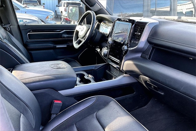 Laramie Level 1 Equipment Group (DISC) (Auto Dimming Exterior Passenger Mirror, Auto High Beam Headlamp Control, Blind Spot & Cross Path Detection, Foam Bottle Insert (Door Trim Panel), ParkSense Front/Rear Park Assist w/Stop, Rain Sensitive Windshield Wipers, Rear 60/40 Folding Split Recline Seat, Remote Tailgate Release, and Tailgate Ajar Warning Lamp), Quick Order Package 27H Laramie, Sport Appearance Package (Black Interior Accents, Body Color Door Handles, Body Color Exterior Mirrors, Body Color Front Bumper, Body Color Premium Power Mirrors, Body Color Rear Bumper w/Step Pads, Grille Surround 3 Body Color Tex 2 Black, Sport Decal, Sport Performance Hood, and Wheels: 20" x 9" Premium Painted w/Inserts), #1 Seat Foam Cushion, 1-Yr SiriusXM Guardian Trial, 10 Speakers, 12" Touchscreen Display, 3 Rear Seat Head Restraints, 3.21 Rear Axle Ratio, 33 Gallon Fuel Tank, 4 Way Front Headrests, 4-Wheel Disc Brakes, 48V Belt Starter Generator, 4G LTE Wi-Fi Hot Spot, 5-Year SiriusXM Traffic Service, 5-Year SiriusXM Travel Link Service, 8.4" Touchscreen Display, ABS brakes, Adjustable pedals, Air Conditioning, Alloy wheels, AM/FM radio: SiriusXM, Anti-Spin Differential Rear Axle, Apple CarPlay, Apple CarPlay/Android Auto, Audio memory, Auto-dimming door mirrors, Auto-dimming Rear-View mirror, Automatic temperature control, Brake assist, Bumpers: chrome, Chrome Exterior Mirrors, Compass, Delay-off headlights, Disassociated Touchscreen Display, Dome Dual LED Reading Lamp, Driver door bin, Driver Seat Memory, Driver vanity mirror, Dual front impact airbags, Dual front side impact airbags, Dual-Pane Panoramic Sunroof, Electronic Stability Control, For Details, Visit DriveUconnect.com, For More Info, Call 800-643-2112, Front anti-roll bar, Front Center Armrest w/Storage, Front dual zone A/C, Front fog lights, Front License Plate Bracket, Front reading lights, Front Seat Back Map Pockets, Front wheel independent suspension, Fully automatic headlights, Garage door transmitter, Google Android Auto, GPS Antenna Input, GPS Navigation, HD Radio, Heated door mirrors, Heated Front Seats, Heated front seats, Heated Steering Wheel, Heated steering wheel, Illuminated entry, Integrated Center Stack Radio, Integrated Voice Command w/Bluetooth, Leather steering wheel, Leather Trim 40/20/40 Bench Seat, LED Dome/Reading Lamp, Low tire pressure warning, Manufacturer's Statement of Origin, Memory seat, MOPAR Front & Rear Rubber Floor Mats, Occupant sensing airbag, Outside temperature display, Overhead airbag, Overhead console, Panic alarm, ParkView Rear Back-Up Camera, Passenger door bin, Passenger vanity mirror, Pedal memory, Power 4-Way Driver Lumbar Adjust, Power 4-Way Passenger Lumbar Adjust, Power 8-Way Driver & Passenger Seats, Power door mirrors, Power driver seat, Power passenger seat, Power steering, Power windows, Radio data system, Radio: Uconnect 12 w/Navigation, Radio: Uconnect 4 w/8.4" Display, Rear anti-roll bar, Rear seat center armrest, Rear step bumper, Rear window defroster, Remote keyless entry, Security system, SiriusXM Radio Service, SiriusXM Satellite Radio, SiriusXM Traffic Plus, SiriusXM Travel Link, SiriusXM w/360L, Speed control, Split folding rear seat, Steering wheel mounted audio controls, Tachometer, Telescoping steering wheel, Tilt steering wheel, Traction control, Trip computer, Turn signal indicator mirrors, USB Host Flip, Variably intermittent wipers, Ventilated Front Seats, Ventilated front seats, Voltmeter, and Wheels: 18" x 8" Aluminum Base PainteD. Recent Arrival!