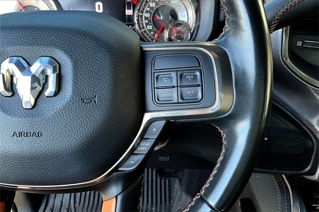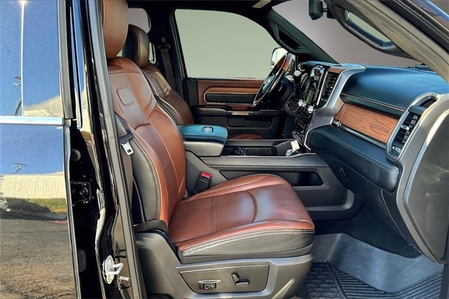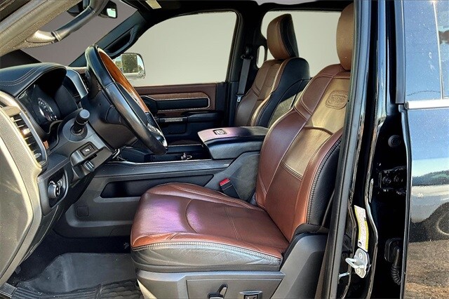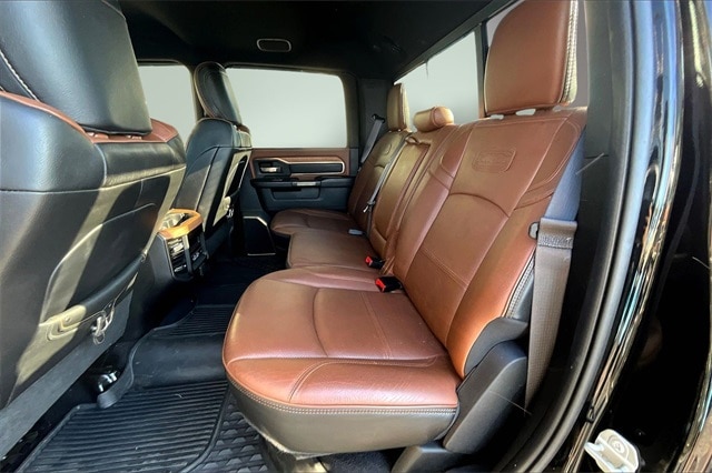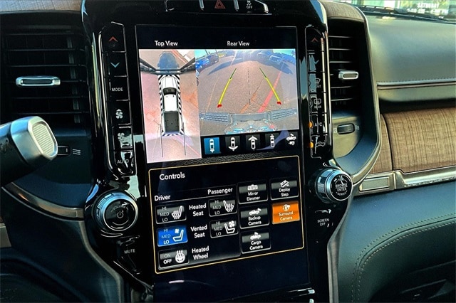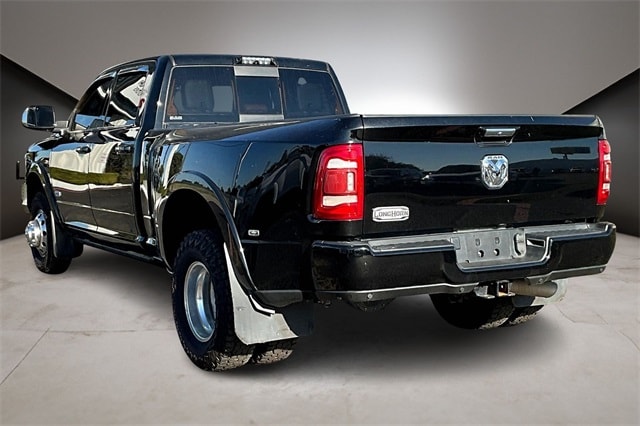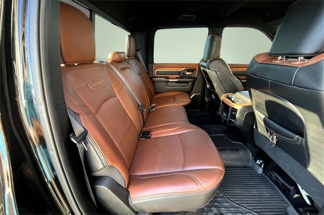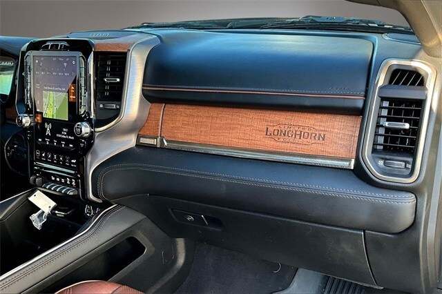 Body Color Bumper Group (Painted Front Bumper and Painted Rear Bumper), DOT Certified Roadside Safety Kit (2 Red Vinyl Flags, 3 Reflecting Triangles, DOT Fire Extinguisher, and Spare Fuses), Longhorn Level 1 Equipment Group (1-Year SiriusXM Guardian Trial, 12" Touchscreen Display, 17 Speaker harman kardon Premium Sound, 4G LTE Wi-Fi Hot Spot, Apple CarPlay, Disassociated Touchscreen Display, Google Android Auto, GPS Antenna Input, GPS Navigation, HD Radio, Integrated Voice Command w/Bluetooth, Power Deployable Running Boards, Radio: Uconnect 12.0 w/Navigation, Ramcharger Wireless Charging Pad, Selectable Tire Fill Alert, SiriusXM Satellite Radio, SiriusXM Traffic Plus, SiriusXM Travel Link, and SiriusXM w/360L), Max Tow Package (5th Wheel/Gooseneck Towing Prep Group, Air Suspension Decal, Auto Level Rear Air Suspension, CTR Stop Lamp w/Cargo View Camera, and MOPAR 30K Direct Mount 5th Wheel Hitch), Protection Group, Quick Order Package 21K Longhorn, Towing Technology Group (Surround View Camera System and Trailer Reverse Guidance), 10 Speakers, 115V Auxiliary Rear Power Outlet, 2 Way Rear Headrest Seat, 220 Amp Alternator, 4 Way Front Headrests, 4-Wheel Disc Brakes, 6000# Front Axle w/Hub Ext, 8.4" Touchscreen Display, ABS brakes, Active Noise Control System, Adjustable pedals, Air Conditioning, Alloy wheels, AM/FM radio: SiriusXM, Apple CarPlay/Android Auto, Audio memory, Auto High-beam Headlights, Auto-dimming Rear-View mirror, Automatic temperature control, Blind Spot & Cross Path Detection (DISC), Box & Rear Fender Clearance Lamps, Brake assist, Bucket Seats, Bumpers: chrome, Center Hub, Chrome Flat Cab-Length Side Steps, Clearance Lamps, Compass, Delay-off headlights, Driver door bin, Driver vanity mirror, Dual front impact airbags, Dual front side impact airbags, Dual Rear Wheels, Electronic Stability Control, Electronically Controlled Throttle, Emergency communication system: SiriusXM Guardian, Folding Flat Load Floor Storage, Front anti-roll bar, Front Bucket Seats, Front Center Armrest w/Storage, Front dual zone A/C, Front fog lights, Front License Plate Bracket, Front reading lights, Front Seat Back Map Pockets, Full Length Premium Upgraded Floor Console, Fully automatic headlights, Garage door transmitter, Genuine wood console insert, Genuine wood dashboard insert, Genuine wood door panel insert, Heated door mirrors, Heated Front Seats, Heated front seats, Heated rear seats, Heated Second Row Seats, Heated Steering Wheel, Heated steering wheel, High Back Seats, Illuminated entry, Integrated Center Stack Radio, Leather steering wheel, Low tire pressure warning, Manufacturer's Statement of Origin, Memory seat, Navigation System, Occupant sensing airbag, Outside temperature display, Overhead airbag, Overhead console, Panic alarm, ParkView Rear Back-Up Camera, Passenger door bin, Passenger vanity mirror, Pedal memory, Power 8-Way Adjustable Passenger Seat, Power Adjust 8-Way Driver Seat, Power door mirrors, Power driver seat, Power passenger seat, Power steering, Power windows, Premium Filigree Leather Seats, Radio data system, Radio: Uconnect 4C Nav w/8.4" Display, Rain sensing wipers, Rear 60/40 Folding Seat, Rear reading lights, Rear seat center armrest, Rear step bumper, Rear Wheelhouse Liners, Rear window defroster, Remote keyless entry, Security system, Speed control, Split folding rear seat, Steering wheel mounted audio controls, Tachometer, Tilt steering wheel, Tip Start, Tire Pressure Monitoring Delete, Traction control, Trip computer, Turn signal indicator mirrors, Variably intermittent wipers, Ventilated Front Seats, Ventilated front seats, Voltmeter, Wheels: 17" x 6.0" Premium Aluminum, and Wheels: 18" x 8.0" Polished Aluminum.