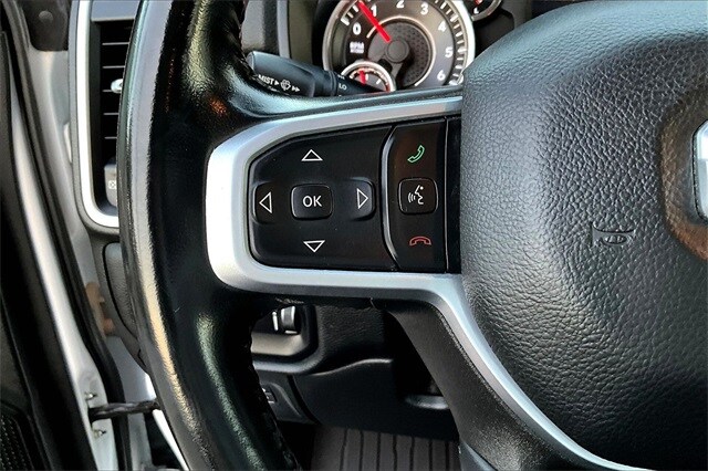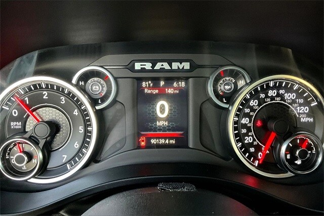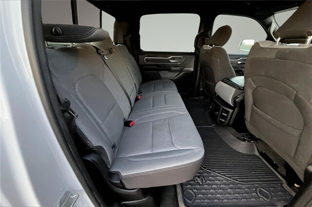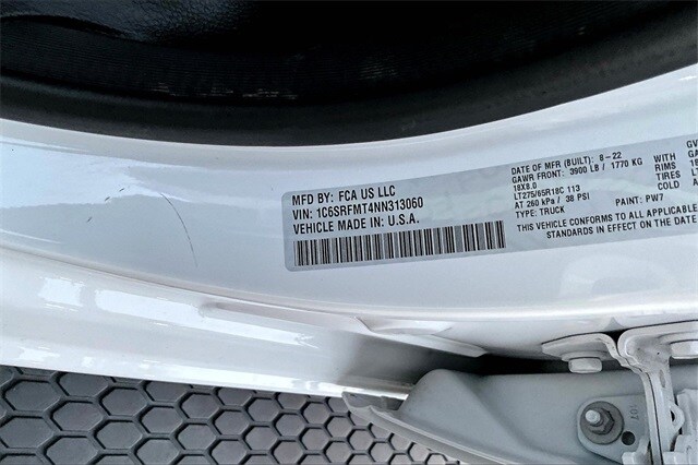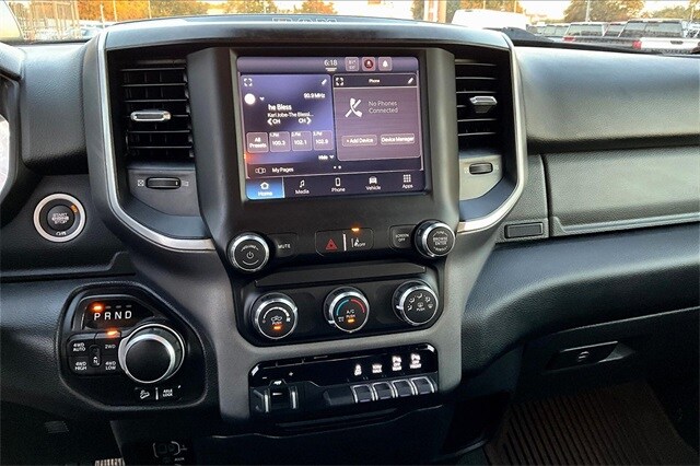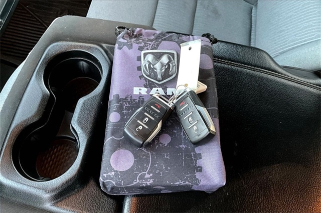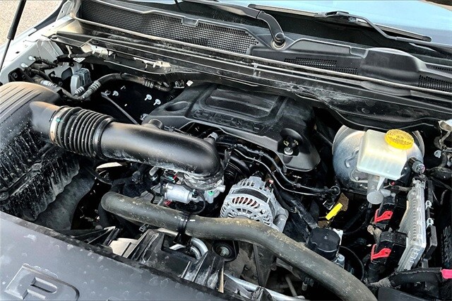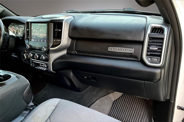 Bed Utility Group (MOPAR Spray In Bedliner and Pick-Up Box Lighting), Big Horn Level 1 Equipment Group (2nd Row In Floor Storage Bins, 4G LTE Wi-Fi Hot Spot, 8.4" Touchscreen Display, Apple CarPlay, Auto-Dimming Exterior Driver Mirror, Auto-Dimming Rear-View Mirror, Black Exterior Mirrors, Black Premium Power Mirrors, Bluetooth Handsfree Phone & Audio, Class IV Receiver Hitch, Cluster 3.5" TFT Color Display, Connectivity - US/Canada, Convex Wide-Angle Mirror Insert, Exterior Mirrors Courtesy Lamps, Exterior Mirrors w/Heating Element, Exterior Mirrors w/Supplemental Signals, For Details, Visit DriveUconnect.com, Global Telematics Box Module (TBM), Glove Box Lamp, Google Android Auto, GPS Antenna Input, Integrated Center Stack Radio, Power 2-Way Driver Lumbar Adjust, Power 8-Way Driver Seat, Power Adjustable Pedals, Power-Folding Mirrors, Radio: Uconnect 5 W w/8.4" Display, Rear Dome w/On/Off Switch Lamp, Rear Power Sliding Window, Rear Window Defroster, SiriusXM Radio Service, SiriusXM Satellite Radio, Sun Visors w/Illuminated Vanity Mirrors, Universal Garage Door Opener, and USB Host Flip), Level 1 Safety Group (Advanced Brake Assist, Full Speed Forward Collision Warning Plus, Lane Keep Assist, and Pedestrian Emergency Braking), Off Road Group (All Plant-Installed Decals, E-Locker Rear Axle, Front Extra HD Shock Absorbers, Hill Descent Control, Off Road Decals, Raised Ride Height, Rear Extra HD Shock Absorbers, and Tow Hooks), Quick Order Package 25Z Big Horn, 3 Rear Seat Head Restraints, 3.21 Rear Axle Ratio, 4 Way Front Headrests, 4-Wheel Disc Brakes, 48V Belt Starter Generator, 6 Speakers, ABS brakes, Air Conditioning, Alloy wheels, AM/FM radio, Brake assist, Bumpers: chrome, Cloth Bench Seat, Compass, Delay-off headlights, Driver door bin, Dual front impact airbags, Dual front side impact airbags, Electronic Stability Control, Emergency communication system: SiriusXM Guardian, Front anti-roll bar, Front Center Armrest w/Storage, Front fog lights, Front License Plate Bracket, Front reading lights, Front Seat Back Map Pockets, Front wheel independent suspension, Fully automatic headlights, Heated door mirrors, Heavy-Duty Engine Cooling, Illuminated entry, Integrated Voice Command w/Bluetooth, Leather steering wheel, Low tire pressure warning, Manufacturer's Statement of Origin, MOPAR Front & Rear Rubber Floor Mats, Occupant sensing airbag, Outside temperature display, Overhead airbag, Overhead console, Panic alarm, ParkSense Front/Rear Park Assist w/Stop, ParkView Rear Back-Up Camera, Passenger door bin, Passenger vanity mirror, Power door mirrors, Power steering, Power windows, Radio data system, Radio: Uconnect 3 w/5" Display, Rear 60/40 Folding Seat, Rear anti-roll bar, Rear seat center armrest, Rear step bumper, Remote keyless entry, Speed control, Split folding rear seat, Steering wheel mounted audio controls, Tachometer, Telescoping steering wheel, Tilt steering wheel, Traction control, Trailer Brake Control, Trip computer, Variably intermittent wipers, Voltmeter, Wheel to Wheel Side Steps, and Wheels: 18" x 8" Cast-Aluminum PainteD.