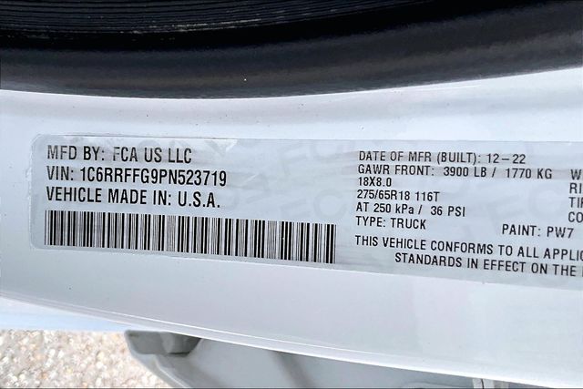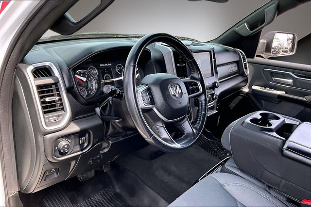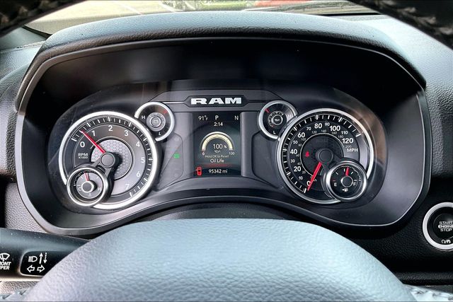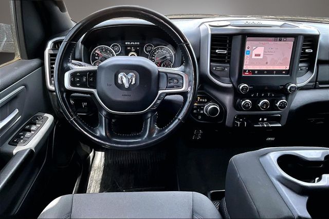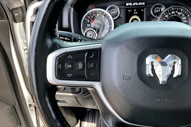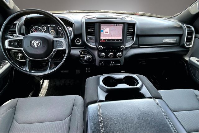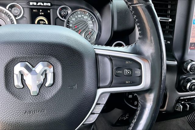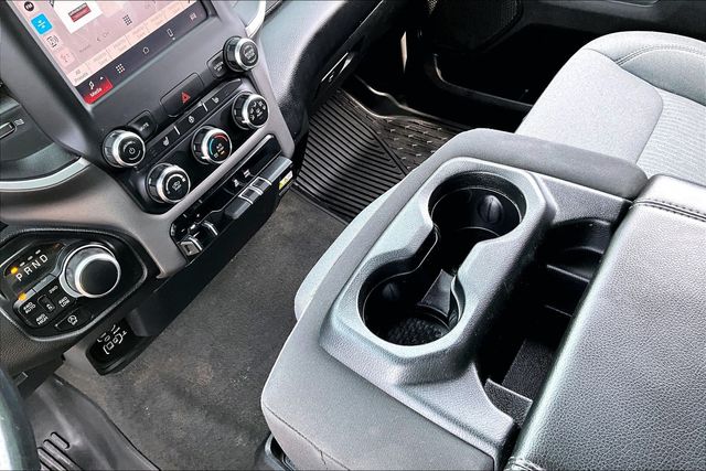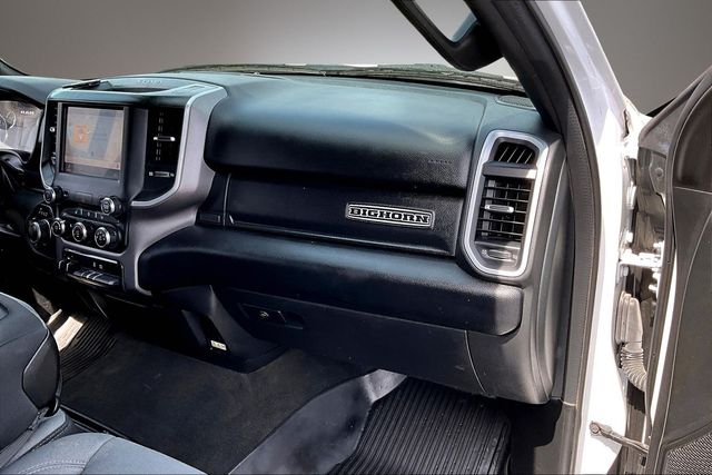 Big Horn Level 1 Equipment Group (2nd Row In Floor Storage Bins, 4G LTE Wi-Fi Hot Spot, 8.4" Touchscreen Display, Apple CarPlay, Auto-Dimming Exterior Driver Mirror, Auto-Dimming Rear-View Mirror, Black Exterior Mirrors, Black Premium Power Mirrors, Bluetooth Handsfree Phone & Audio, Class IV Receiver Hitch, Connectivity - US/Canada, Convex Wide-Angle Exterior Mirror Insert, Electric Shift-On-Demand Transfer Case, Exterior Mirrors Courtesy Lamps, Exterior Mirrors w/Heating Element, Exterior Mirrors w/Supplemental Signals, For Details, Visit DriveUconnect.com, For More Info, Call 800-643-2112, Front Fog Lamps, Glove Box Lamp, Google Android Auto, GPS Antenna Input, Heated Front Seats, Heated Steering Wheel, Integrated Center Stack Radio, Passenger Sun Visor w/Illuminated Mirror, Power-Folding Mirrors, Radio: Uconnect 5 W w/8.4" Display, Rear Dome w/On/Off Switch Lamp, Rear Power Sliding Window, Rear Window Defroster, SiriusXM Satellite Radio, and USB Host Flip), Protection Group (Tow Hooks), Quick Order Package 23Z Big Horn (Big Horn Badge), 115V Auxiliary Power Outlet, 3 Rear Seat Head Restraints, 3.21 Rear Axle Ratio, 4 Way Front Headrests, 4-Wheel Disc Brakes, 48V Belt Starter Generator, 6 Speakers, ABS brakes, Air Conditioning, Alloy wheels, AM/FM radio, Brake assist, Bumpers: chrome, Cloth Bench Seat, Compass, Delay-off headlights, Driver door bin, Dual front impact airbags, Dual front side impact airbags, Electronic Stability Control, Emergency communication system: SiriusXM Guardian, Front anti-roll bar, Front Center Armrest w/Storage, Front License Plate Bracket, Front reading lights, Front Seat Back Map Pockets, Front wheel independent suspension, Fully automatic headlights, Global Telematics Box Module (TBM), Heated door mirrors, Illuminated entry, Integrated Voice Command w/Bluetooth, Leather steering wheel, Low tire pressure warning, Manufacturer's Statement of Origin, MOPAR Front & Rear Rubber Floor Mats, Occupant sensing airbag, Outside temperature display, Overhead airbag, Overhead console, Panic alarm, ParkView Rear Back-Up Camera, Passenger door bin, Passenger vanity mirror, Power door mirrors, Power steering, Power windows, Radio data system, Radio: Uconnect 3 w/5" Display, RAM Grille Badge - Chrome, Rear 60/40 Folding Seat, Rear anti-roll bar, Rear seat center armrest, Rear step bumper, Remote keyless entry, Speed control, Split folding rear seat, Steering wheel mounted audio controls, Tachometer, Telescoping steering wheel, Tilt steering wheel, Traction control, Trailer Brake Control, Trip computer, Variably intermittent wipers, Voltmeter, and Wheels: 18" x 8" Cast-Aluminum PainteD.