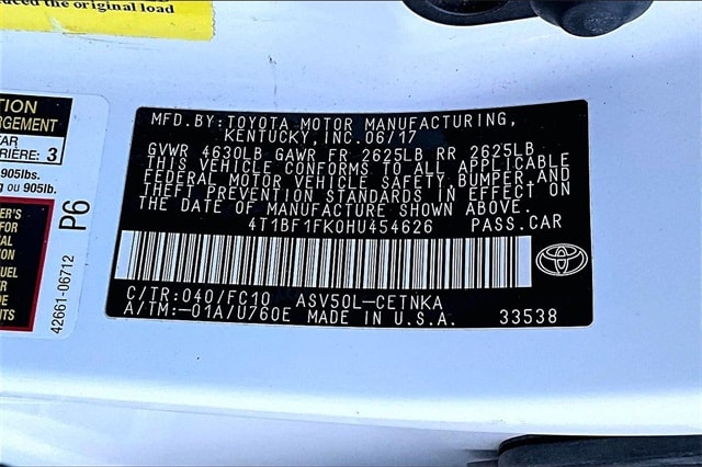 White 2017 Toyota Camry LE FWD 6-Speed Automatic 2.5L I4 SMPI DOHC Ash Cloth.